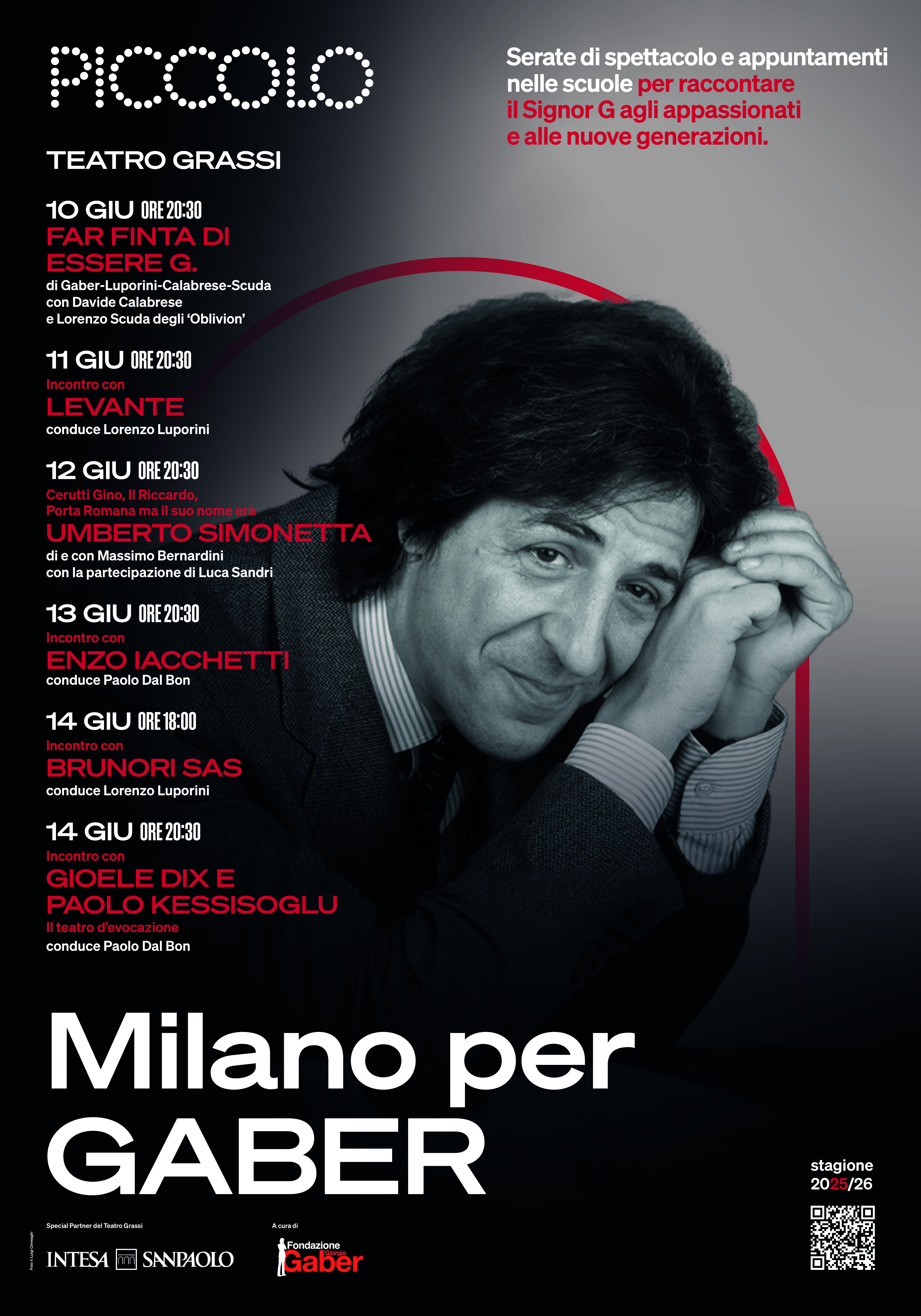 Torna con sei appuntamenti una nuova edizione di MILANO PER GABER, la rassegna di spettacoli e incontri con i quali la Fondazione Giorgio Gaber approfondisce e propone al pubblico degli appassionati e alle nuove generazioni, il vastissimo repertorio musicale e teatrale del Signor G. e il lascito del suo pensiero nella contemporaneità. Sei importanti iniziative per l’edizione #2026 che si terrà dal 10 al 14 giugno al Piccolo Teatro Grassi.